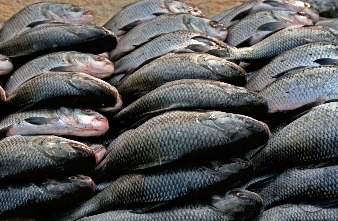 Description : Assorted Catla (Catla catla) fish at Shawari Ghat, the largest wholesale market of fish in Dhaka, Bangladesh.