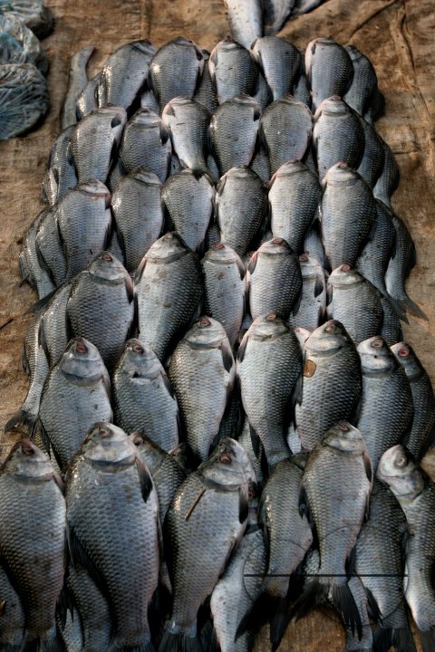 Description : Assorted Catla (Catla catla) fish at Shawari Ghat, the largest wholesale market of fish in Dhaka, Bangladesh.
