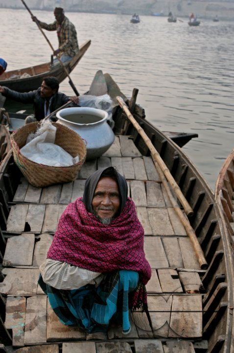 Description : Portrait of an old fisher man on his boat at Shadar ghat, Dhaka, Bangladesh.