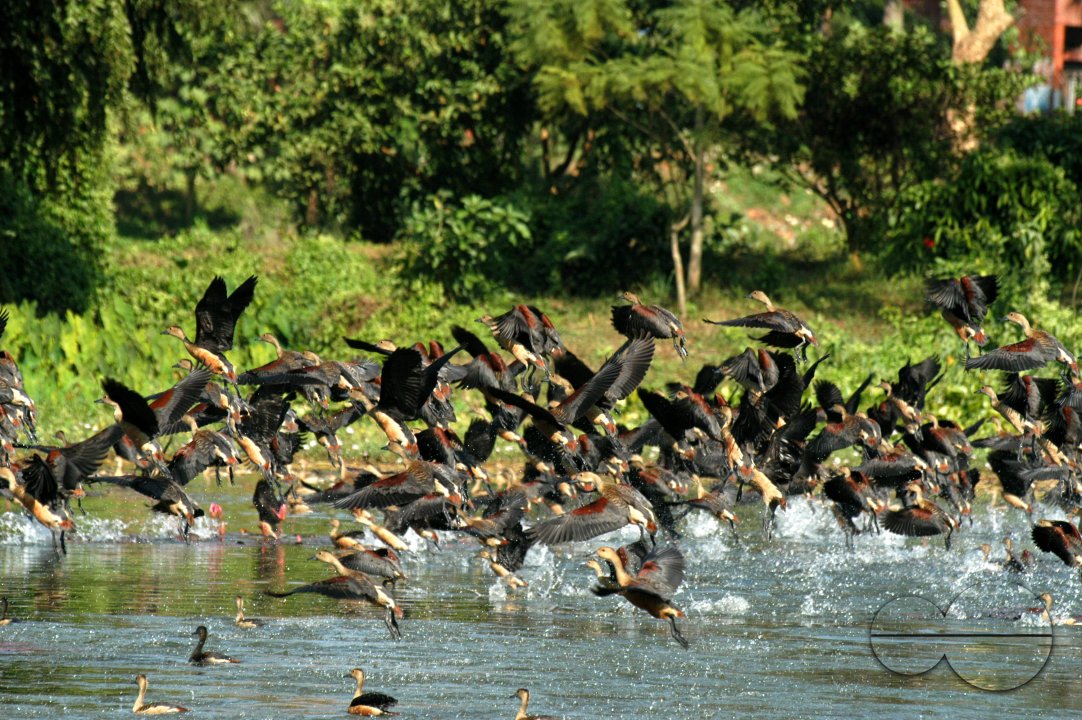 Description : Migratory birds in a lake.