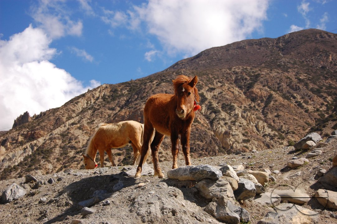 Description : Donkeys and horses are the only means of transport in Manang area. The animals can carry heavy loads thus making them ideal for such territories. Nepal.
