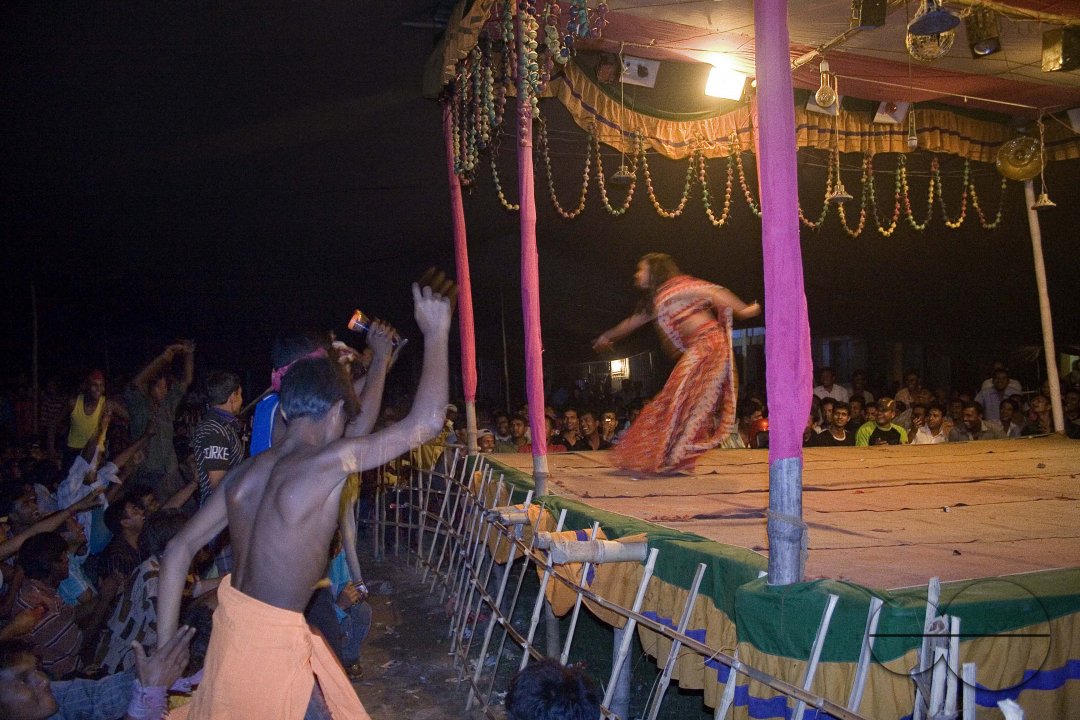 Description : The audience dances with the music of an open air opera or ?Jatra?, staged by Ananda Opera group, at Dumuria, Khulna, Bangladesh.