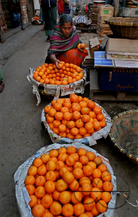 Description : A woman selling orange at a fruit market near Sadar ghat in Dhaka, Bangladesh.