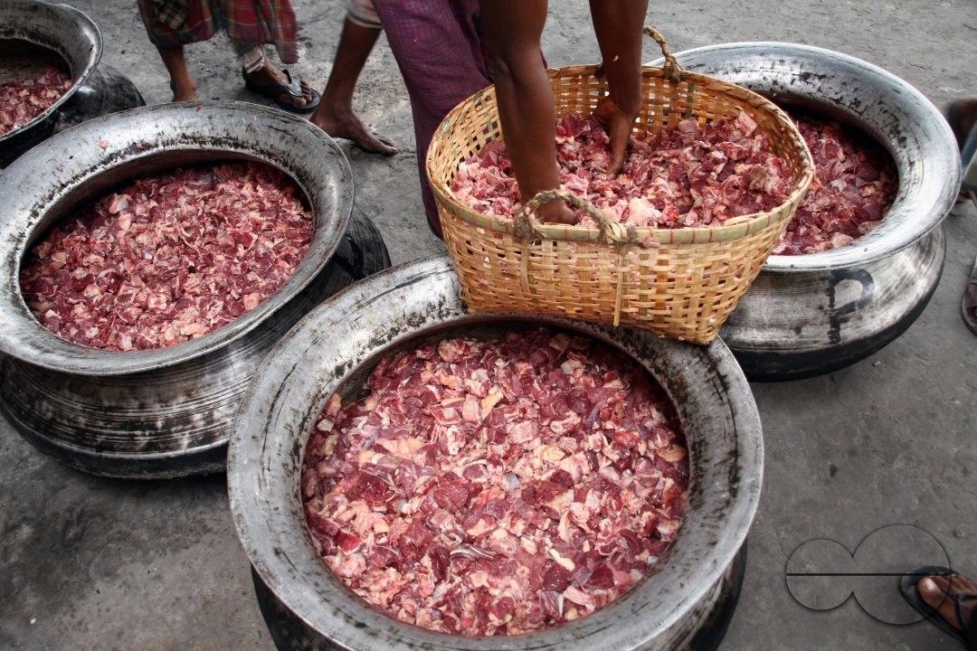 Description : Mezban (Persian word meaning host) stands for community feast, with a simple menu of rice and beef-curry only. Its a tradition of Chittagong mainly observed by the rich. Usually a mezban is held on the birth and death anniversary of the Prophet Muhammad (sm) that is 12th day of the lunar month Rabiul Awal. Besides, mezban is also held on other occasions such as the death anniversary of an individual, birth of a child or inauguration of a new business, or celebration of the entrance to a new residence. Winter is a popular season for organizing such feasts. Chittagong, Bangladesh.