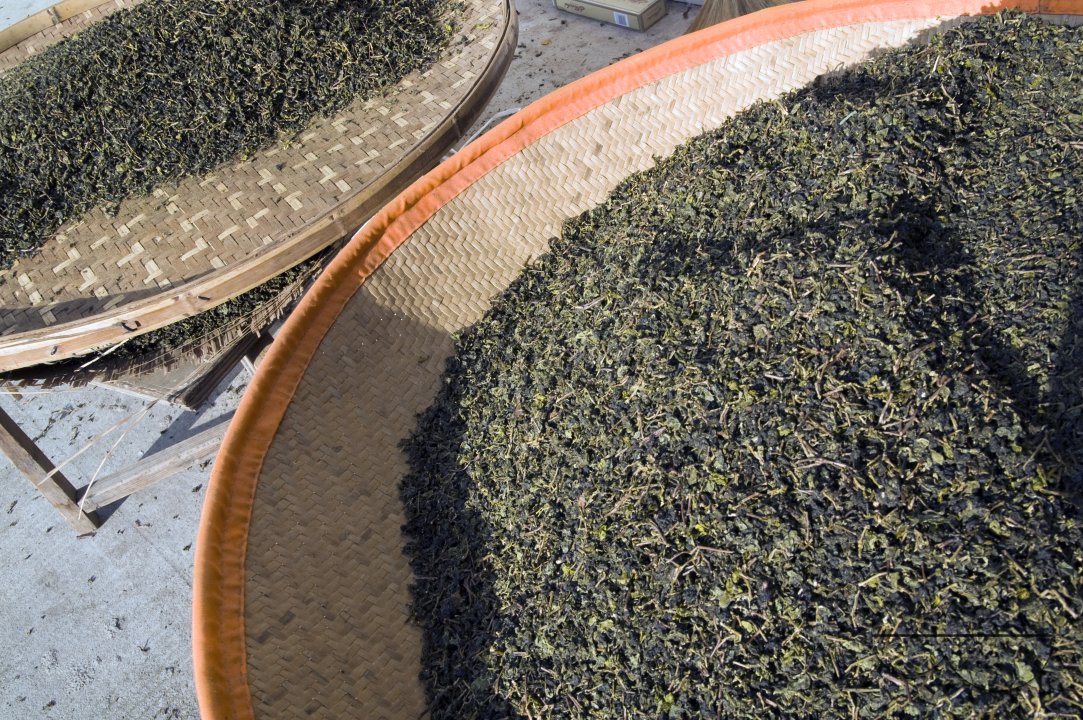 Description : CHINA Drying tea leaves after harvest in Fujian province.