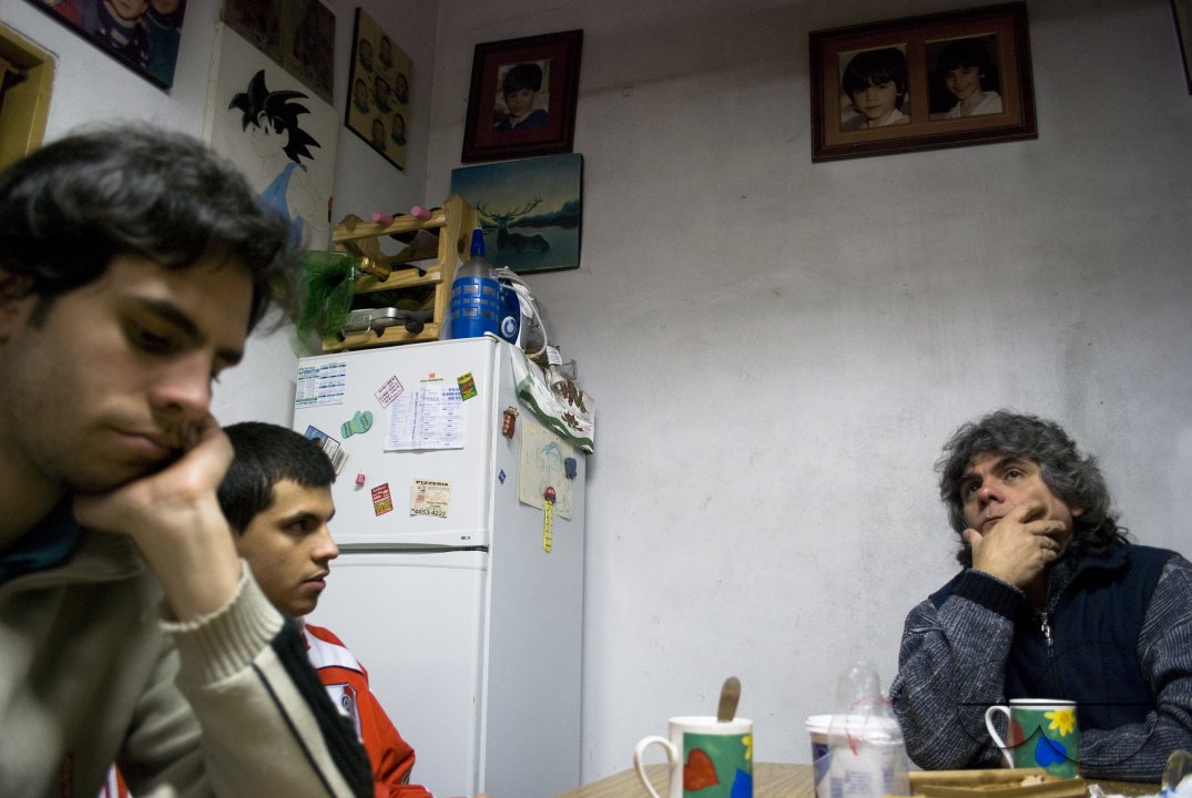 Description : Daniel and his sons after dinner..His sons were kids during occupation of the factory but now one of them works with him at the printer's. July 19 2011 Buenos Aires City.