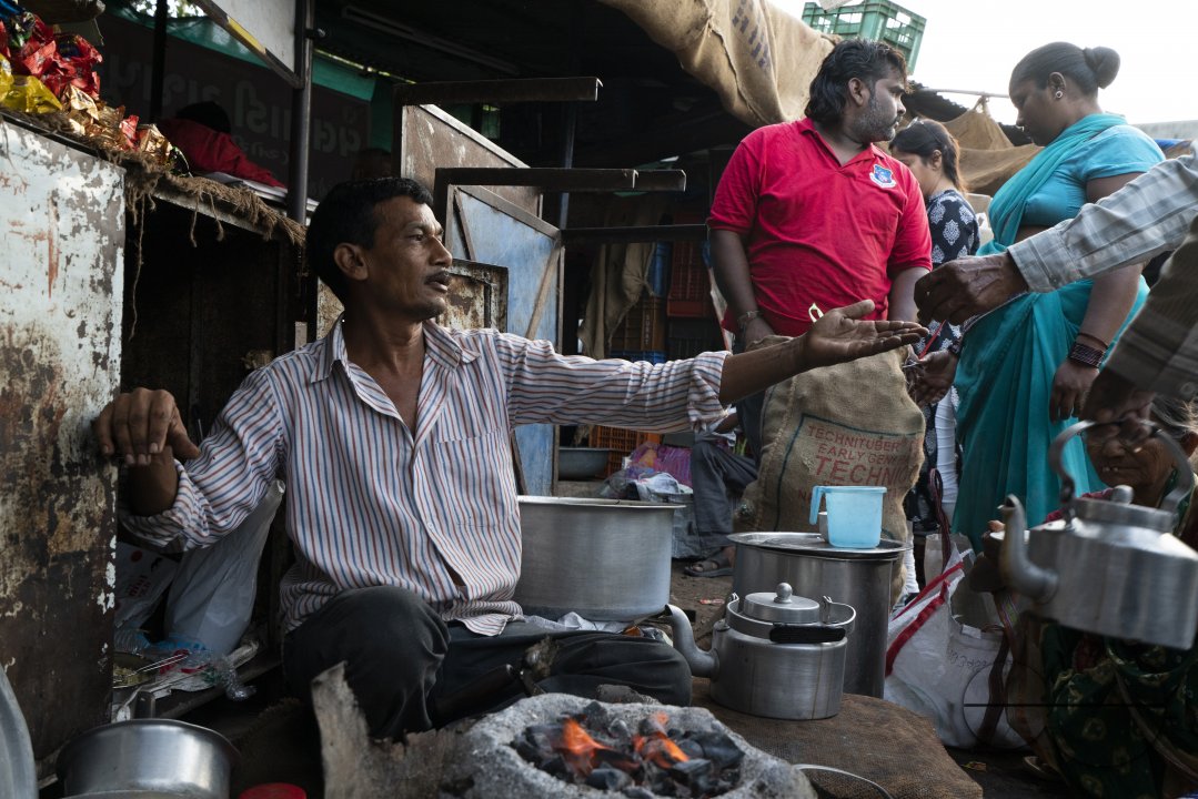 Description : Tea stall owner at work. Khanderao Market is a sprawling market complex housing fruits, vegetables, flowers and other items. Khanderao Market is an ancestral heritage of Vadodara showcasing the glorious days of Gaekwad rulers, built by Maharaja Sayajirao Gaekwad III.