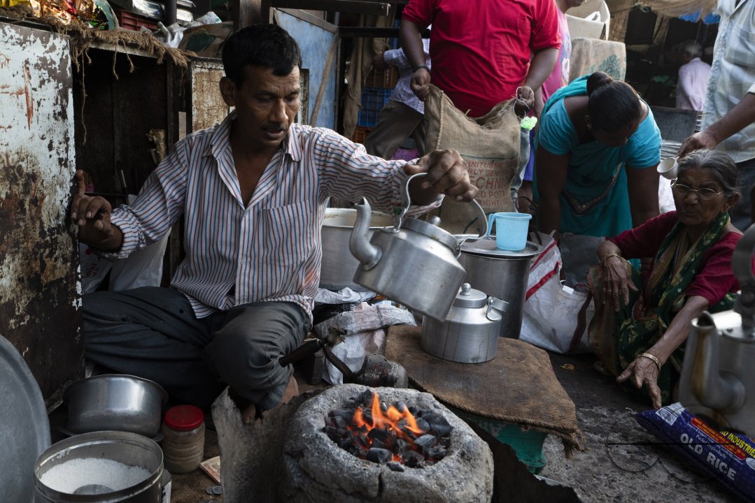 Description : Tea stall owner at work. Khanderao Market is a sprawling market complex housing fruits, vegetables, flowers and other items. Khanderao Market is an ancestral heritage of Vadodara showcasing the glorious days of Gaekwad rulers, built by Maharaja Sayajirao Gaekwad III.