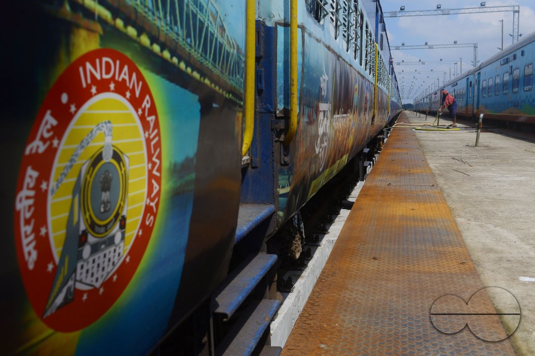 Description : Railway workers are checking an express train for the resumption of railway services which was not functioning for over 6 months because of lockdown due to the coronavirus outbreak. Agartala, Tripura, India.