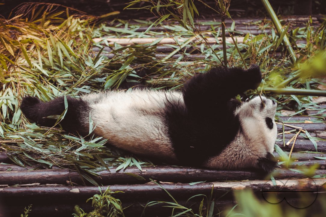 Description : The giant panda, also known as the panda bear or simply the panda, is a bear native to south central China. It is characterised by large, black patches around its eyes, over the ears, and across its round body. The name "giant panda" is sometimes used to distinguish it from the red panda, a neighboring musteloid.