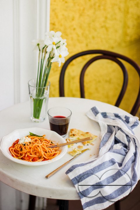 Description : Pasta is a type of food typically made from an unleavened dough of wheat flour mixed with water or eggs, and formed into sheets or other shapes, then cooked by boiling or baking. Rice flour, or legumes such as beans or lentils, are sometimes used in place of wheat flour to yield a different taste and texture, or as a gluten-free alternative. Pasta is a staple food of Italian cuisine. Italy.