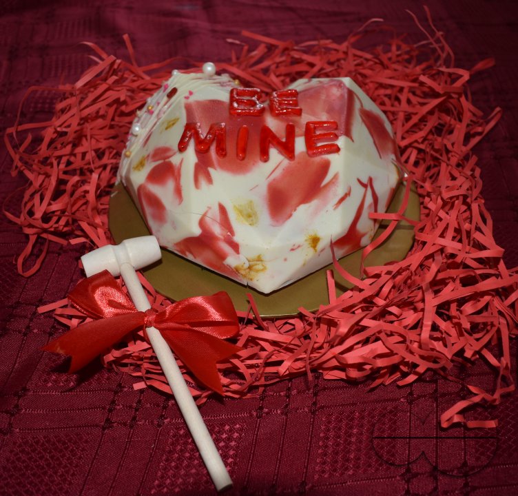 Description : A heart shaped chocolate coated cake. The inside is hollow and filled with chocolates. The chocolate coating has to be cracked open with a plastic hammer. Specially created to celebrate Valentine???s Day. Colombo, Sri Lanka.
