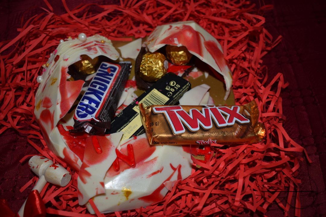 Description : A heart shaped chocolate coated cake. The inside is hollow and filled with chocolates. The chocolate coating has to be cracked open with a plastic hammer. Specially created to celebrate Valentine???s Day. Colombo, Sri Lanka.