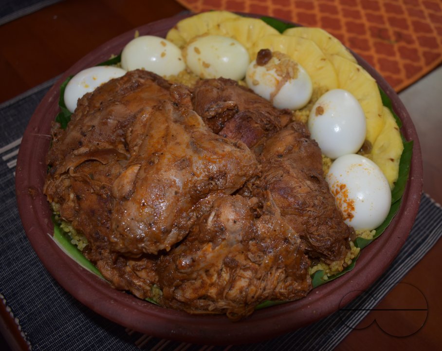 Description : Biryani is a mixed rice dish originating among the Muslims of the Indian subcontinent. It is made with Indian spices, rice, and meat. The Biriyani comes in clay pots (which you get to keep), and can be ordered with Chicken, mutton or vegetarian. Additional side dishes include Pineapple, Boiled fry Egg, special pickles, Raitha and mint sambol. It's takeaway or delivery, and can be ordered from 4 to 14 packs. Colombo, Sri Lanka.