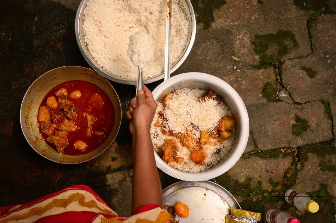 Description : A woman is cooking biryani. Biryani is an Indo-Aryan word derived from the Persian word 'Birian', which means fried before cooking and 'Birinj', the Persian word for rice. The Biryani is one of the most popular and ordered dishes in India. It is made with Indian spices, rice, and meat (chicken, beef, goat, lamb, prawn, fish), and sometimes, in addition, eggs or vegetables such as potatoes in certain regional varieties. There are various theories related to the origin of this scrumptious dish. Many historians believe that biryani originated from Persia and was brought to India by the Mughals. The modern biryani developed in the royal kitchens of the Mughal Empire and is a mix of the native spicy rice dishes of India and the Persian pilaf. Tehatta, West Bengal; India.
