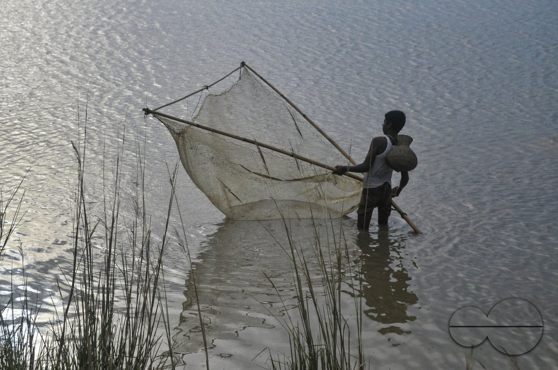 Description : Rural boys are catching fish with a traditional hand made net in a canal at Horipor. Sylhet, Bangladesh.
