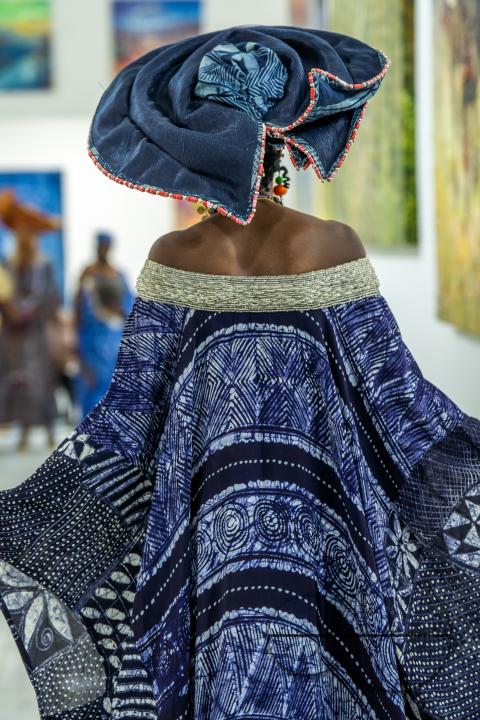 Description : Adire fashion display by Nike Monika Okundaye, at the Nike art gallery in Abuja, Nigeria's capital city. Nike art gallery is one of the largest art galleries in West Africa. Abuja, Nigeria.