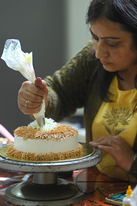 Description : Sutapa Choudhary, a cake artist and teacher, making cakes at her cake parlour, "CREAMY DELIGHTS". There is a huge demand for cakes during the Christmas season in Agartala. Tripura, India.